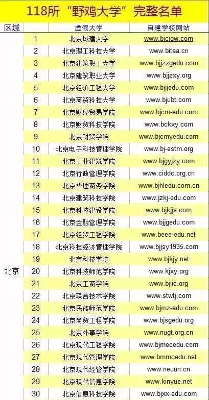 绝大部分虚假大学都仿冒了正规普通高校或其他正规学校的名称。