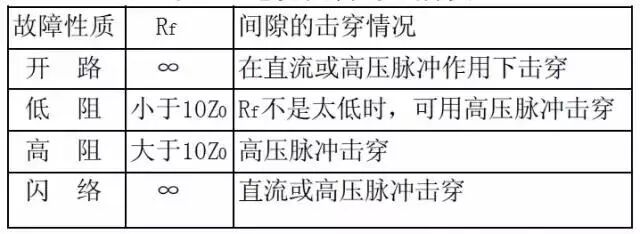 间隙击穿电压Vg的大小取决于放电通道的距离,电阻Rf的大小取决于电缆介质的碳化程度,而电容Cf的大小取决于故障点受潮的程度,数值很小,一般可以忽略。