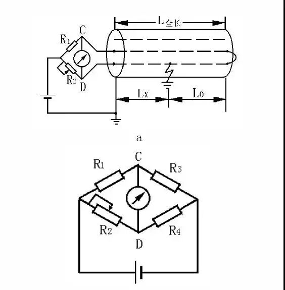 电桥法是一种最为经典测试电缆故障测距方法。如下图所示: