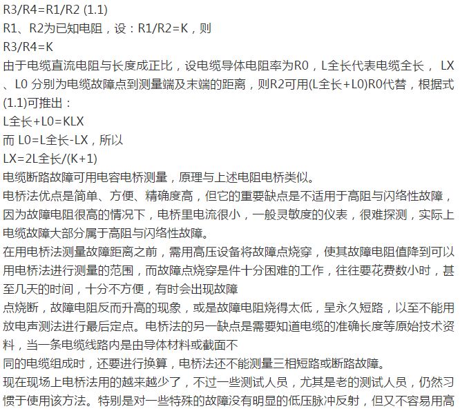 压击穿,如故障电阻不是太高的话,使用电桥法往往可以解决问题。