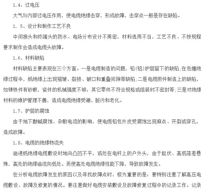 绝缘受潮后引起故障。造成电缆受潮的主要原因有: