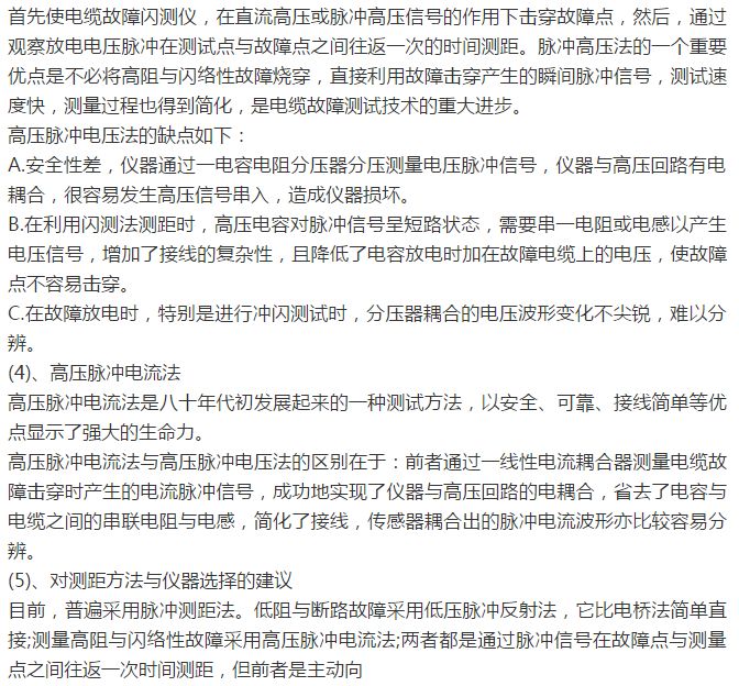 长期以来,涌现出了许多测量方法与仪器,这些方法与仪器适用于不同故障情况,各有优缺点,这里就故障测距与定点仪器简单地做一下评价和比较。