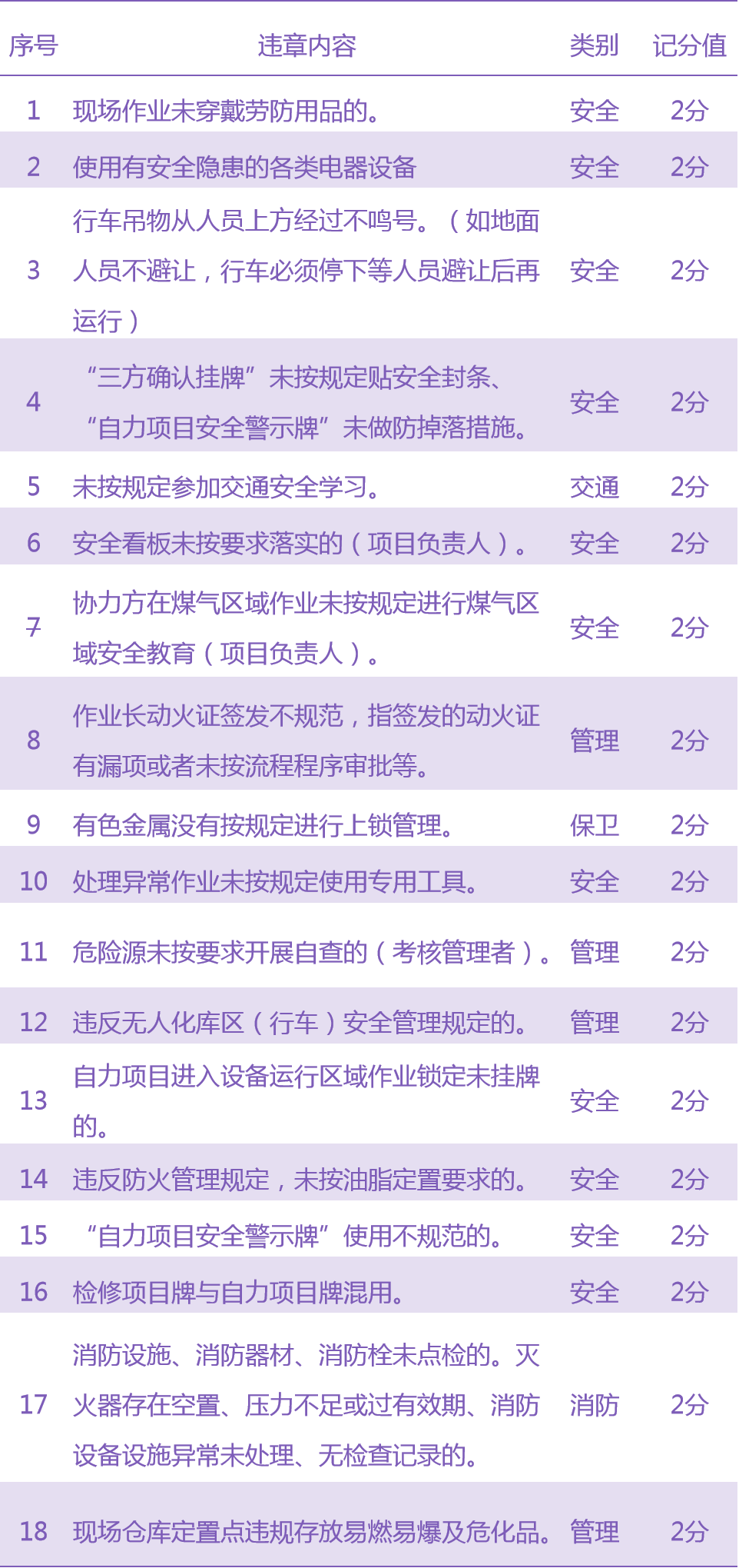 三违详细清单