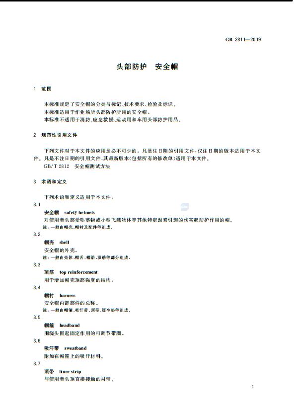 安全帽标准(GB 2811- 2019 头部防护 安全帽)已于2019年12月31日发布了。新标准将于2020年7月1日起正式生效。值得注意的是新版标准废止了 旧版GB 2811 - 2007 ,您正在使用的安全帽是否合规,快对照标准检查一下吧。