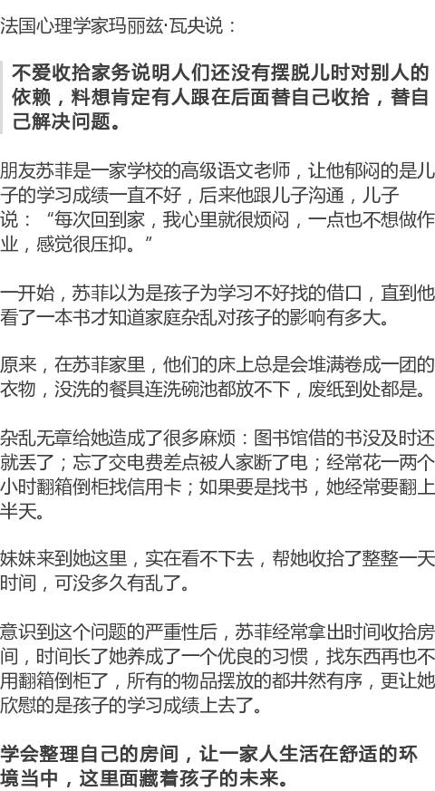 反之,如果家里杂乱无章,那么他的生活状态和心情也都是杂乱的,学习成绩自然不会好。