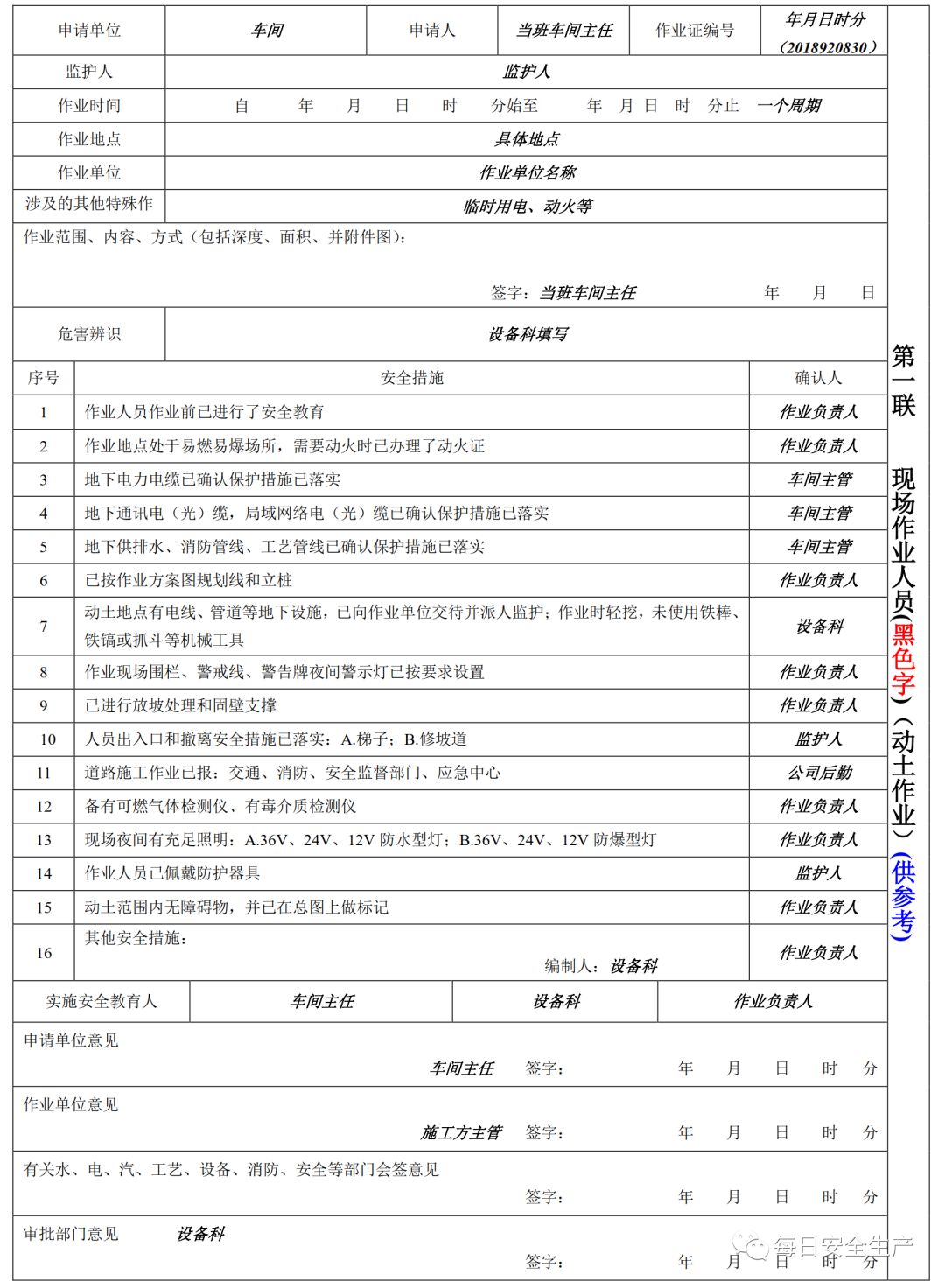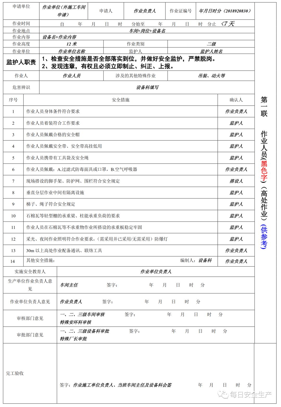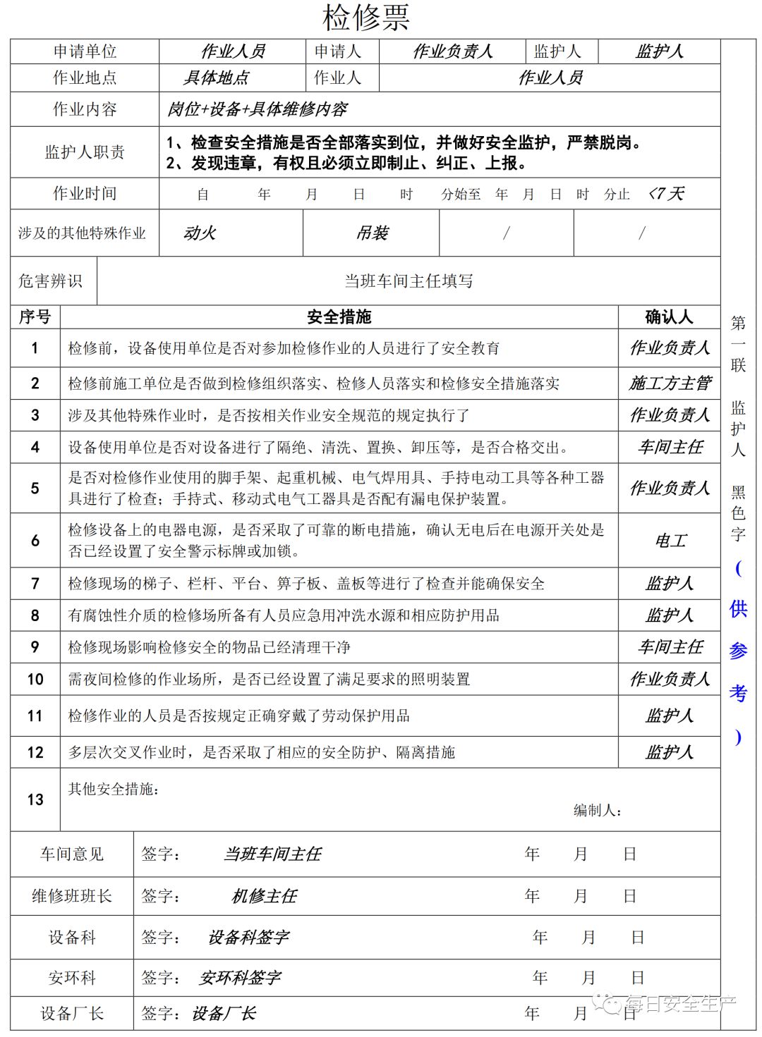 特殊作业票模板
