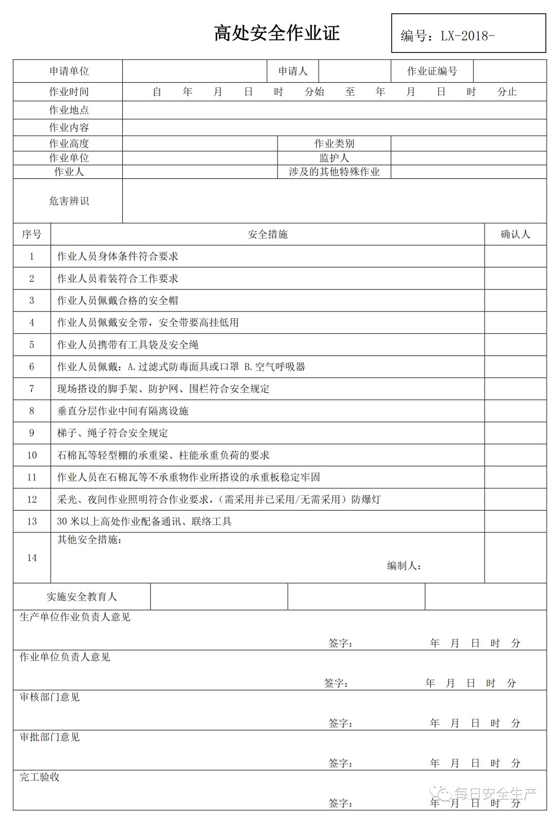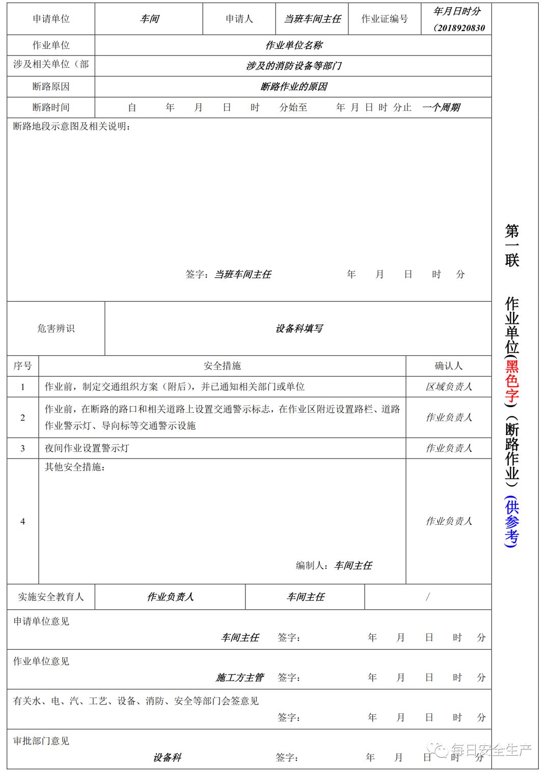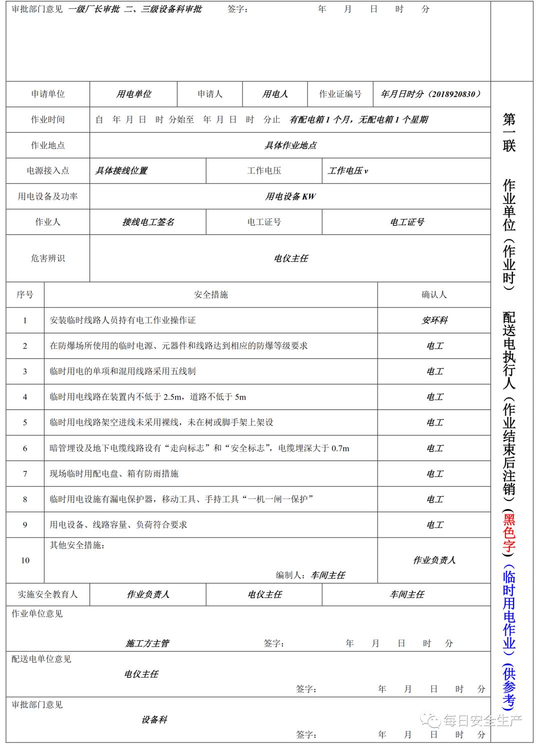 特殊作业票模板