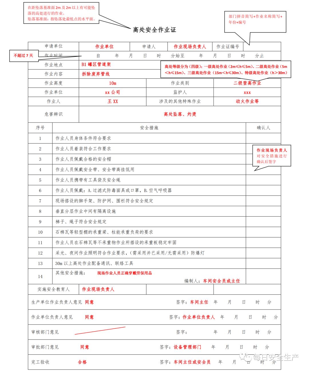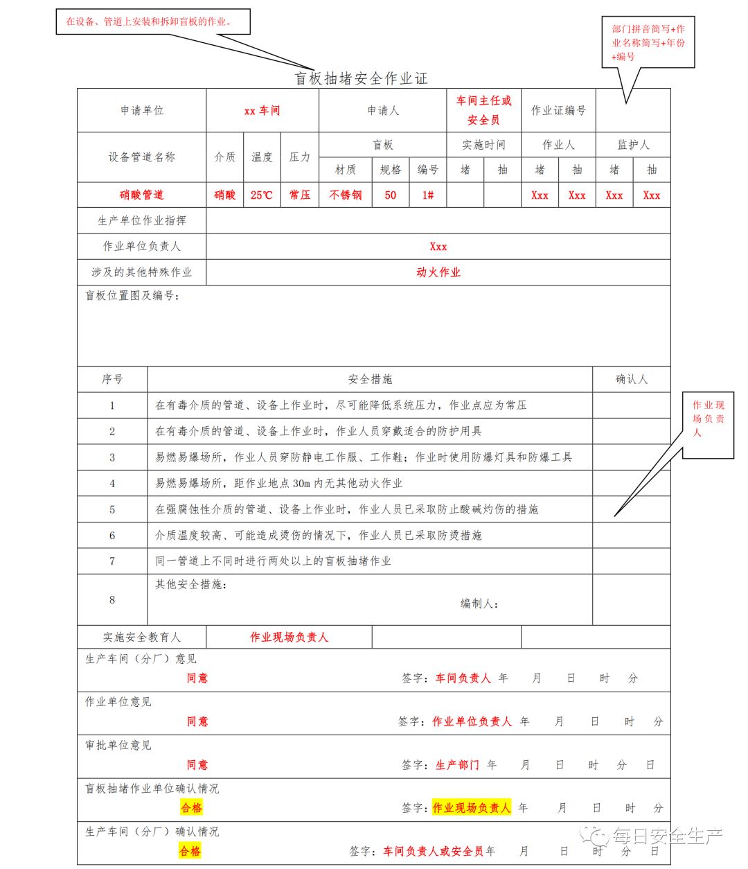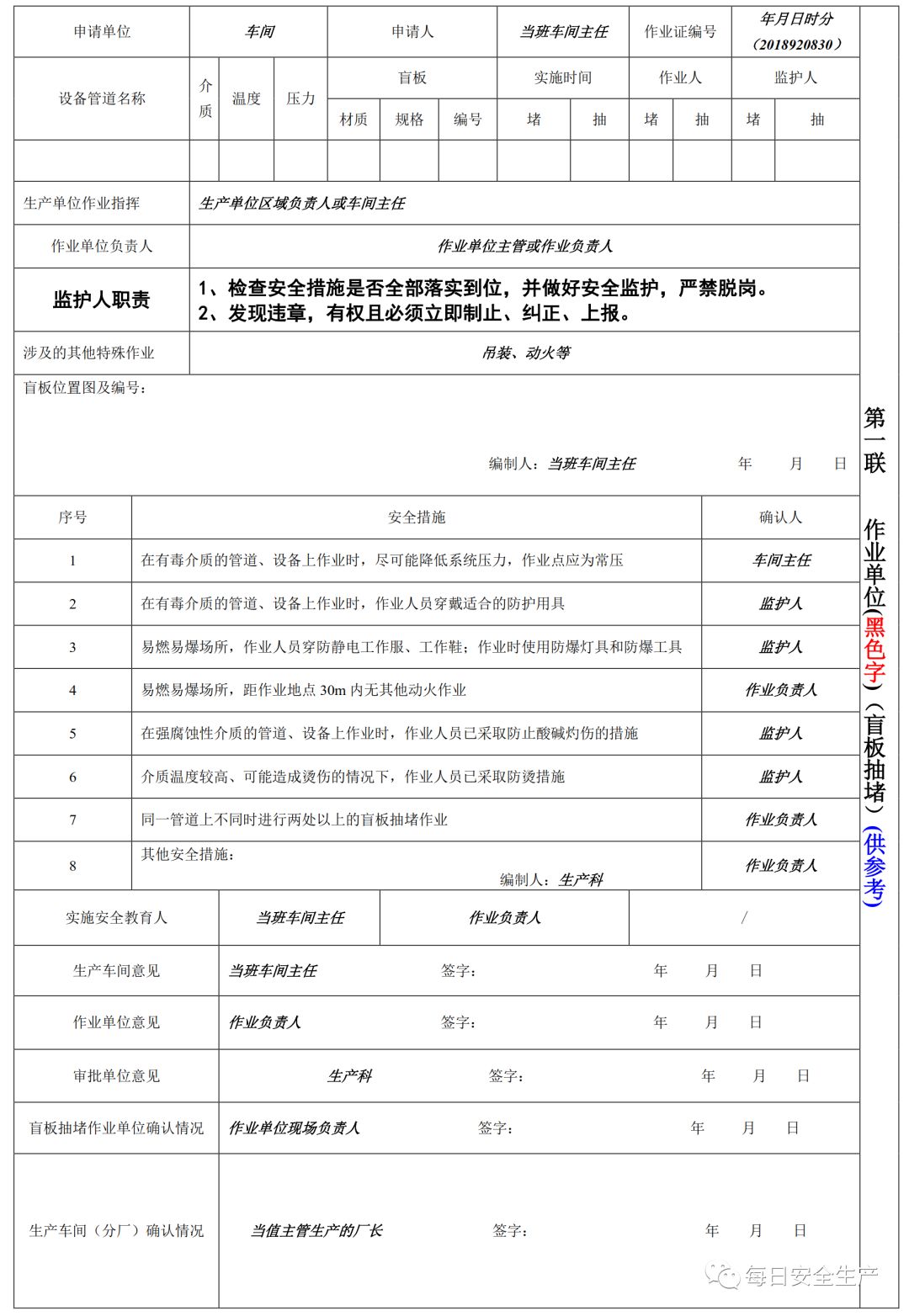 特殊作业票填写规范
