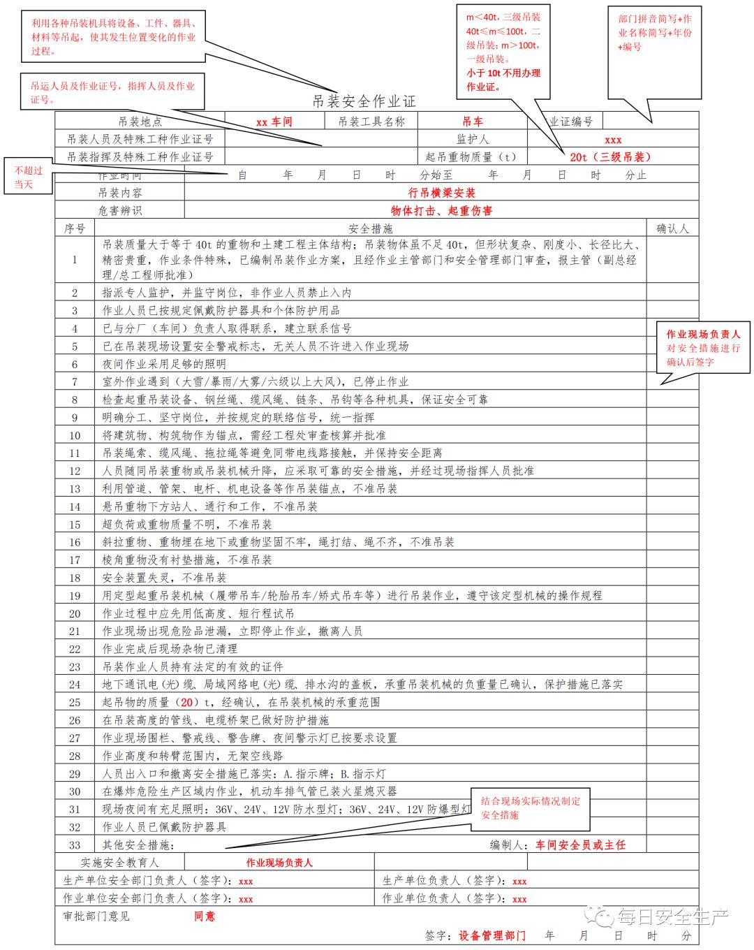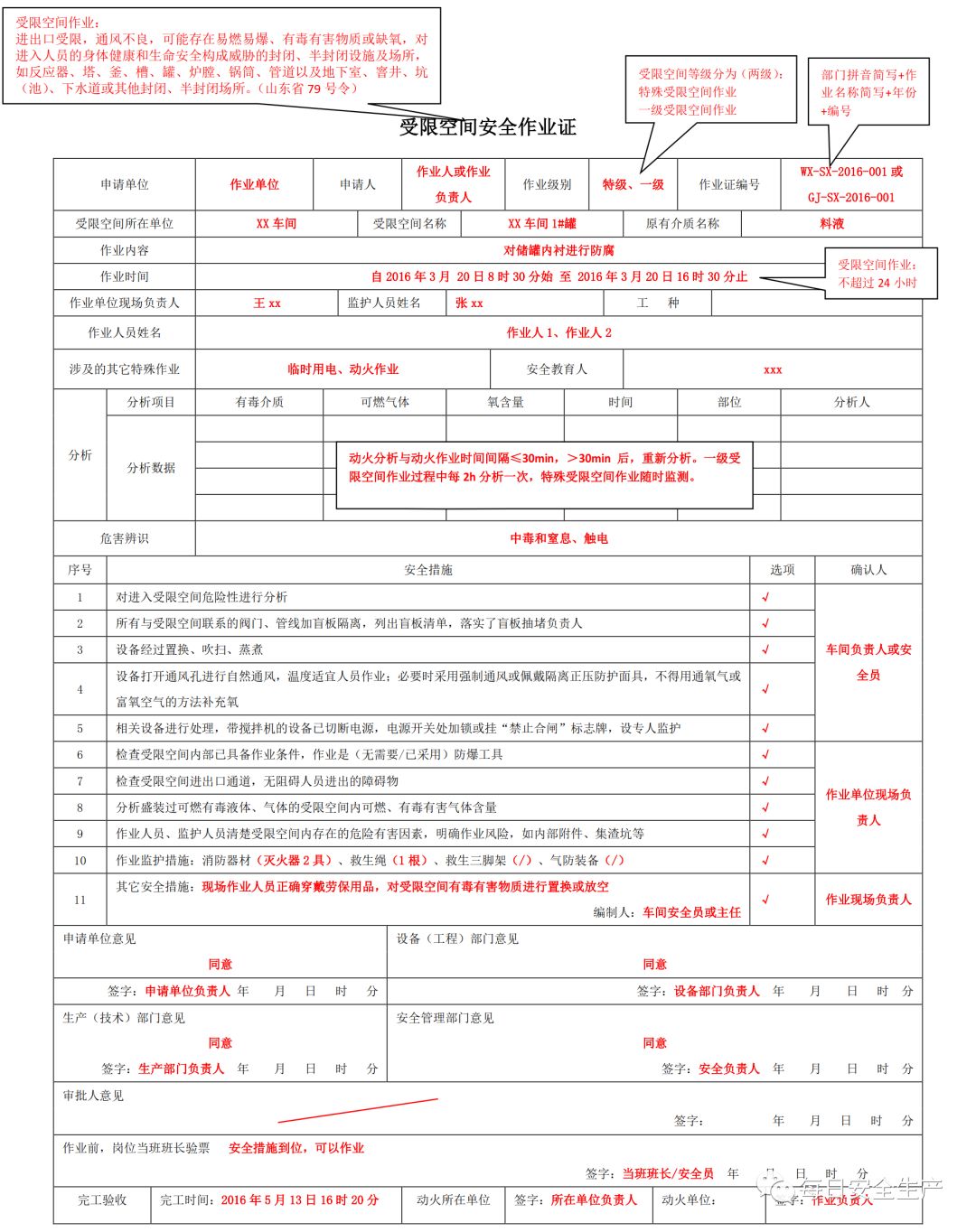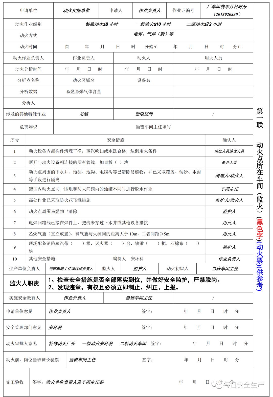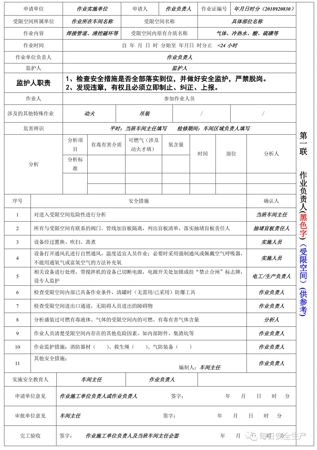 特殊作业票填写规范