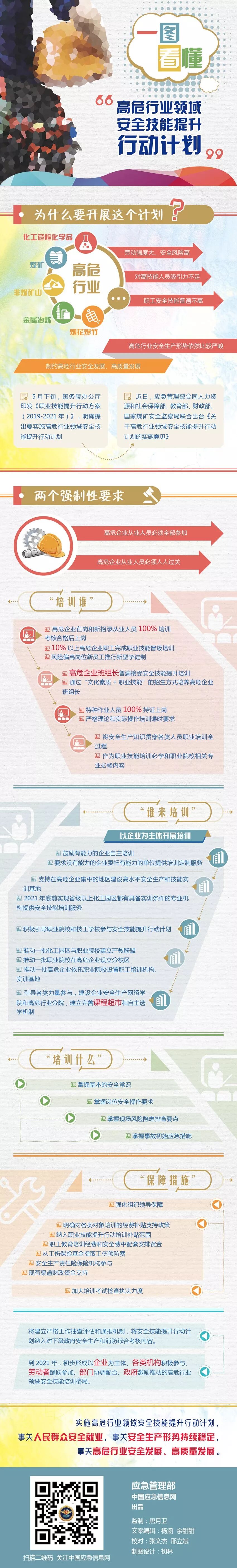 根据习近平总书记关于大规模开展职业技能培训的重要指示精神,今年《政府工作报告》明确提出要从失业保险基金结余中拿出1000亿元,用于1500万人次以上的职工技能提升和转岗转业培训,实施职业技能提升行动。李克强总理作出批示,强调要“加大高危行业从业人员安全技能培训力度”。其他多位中央领导同志也明确要求,要利用职业技能提升行动契机,加大高危行业员工培训力度。5月下旬,国务院办公厅印发了《职业技能提升行动方案(2019-2021年)》,明确提出要实施高危行业领域安全技能提升行动计划,普遍对化工、矿山等高危行业从业人员和各类特种作业人员开展安全技能培训,严格执行安全技能培训合格后上岗制度等系列要求。