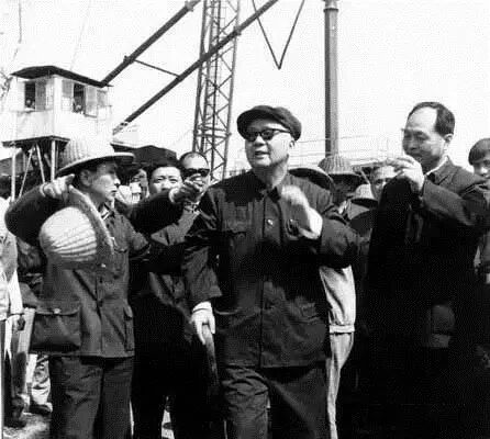 ▶ 1982年5月,著名数学家华罗庚来到淮北特凿公司钻井施工现场实地考察,并向工程技术人员传授优选法技术,用于指导钻井施工。