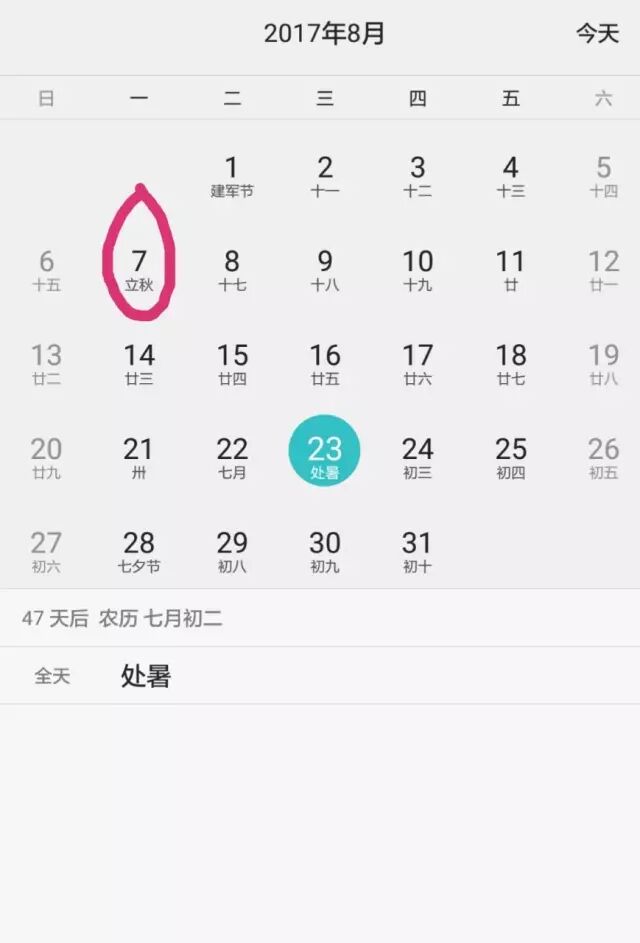 根据2017年月份的编排情况发现闰六月的时间段为7月23日-8月21日 ,再查看2017年中气日期会看到当月只有六月十六日的“立秋”节气,而中气“处暑”落在下一个月的初二。由于这个闰月跟在六月后面,所以我们把这个闰月称为闰六月。上一次闰六月是在1987年,因此在前期闰六月出生的朋友,今年闰六月能过上真正的生日了。