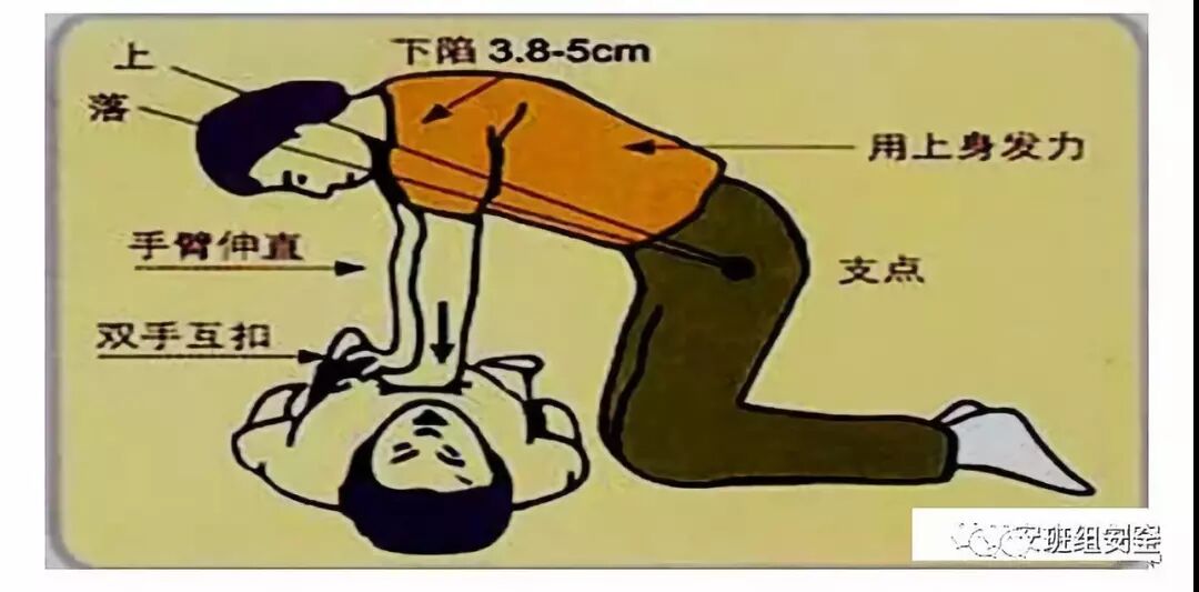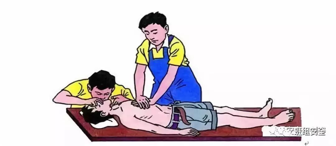 ①受伤者朝上平卧,松开衣服,清除口内杂物,后背处应是平整硬地板或垫上木板。