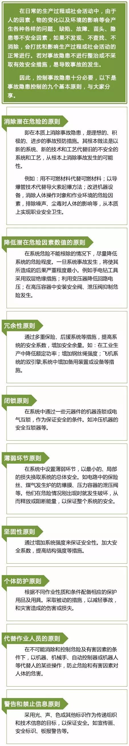 事故隐患控制的九个基本原则