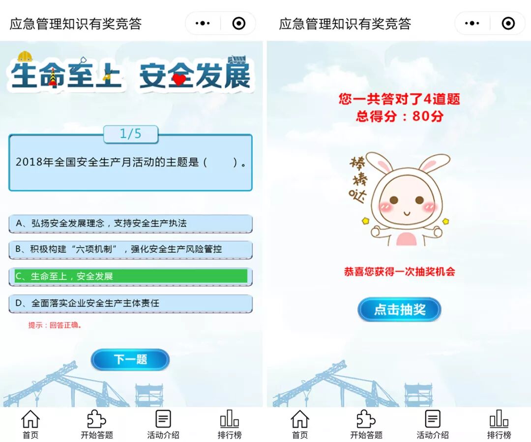 答对4题及以上即可获取1次抽奖机会