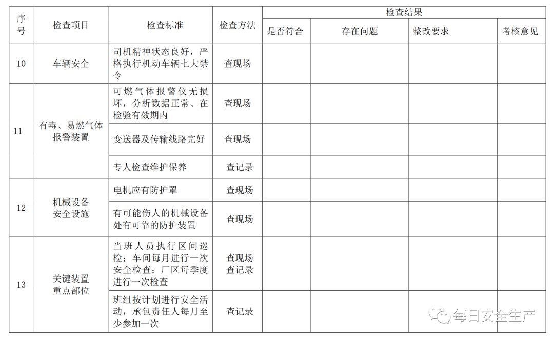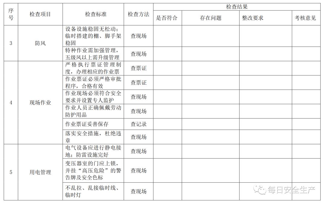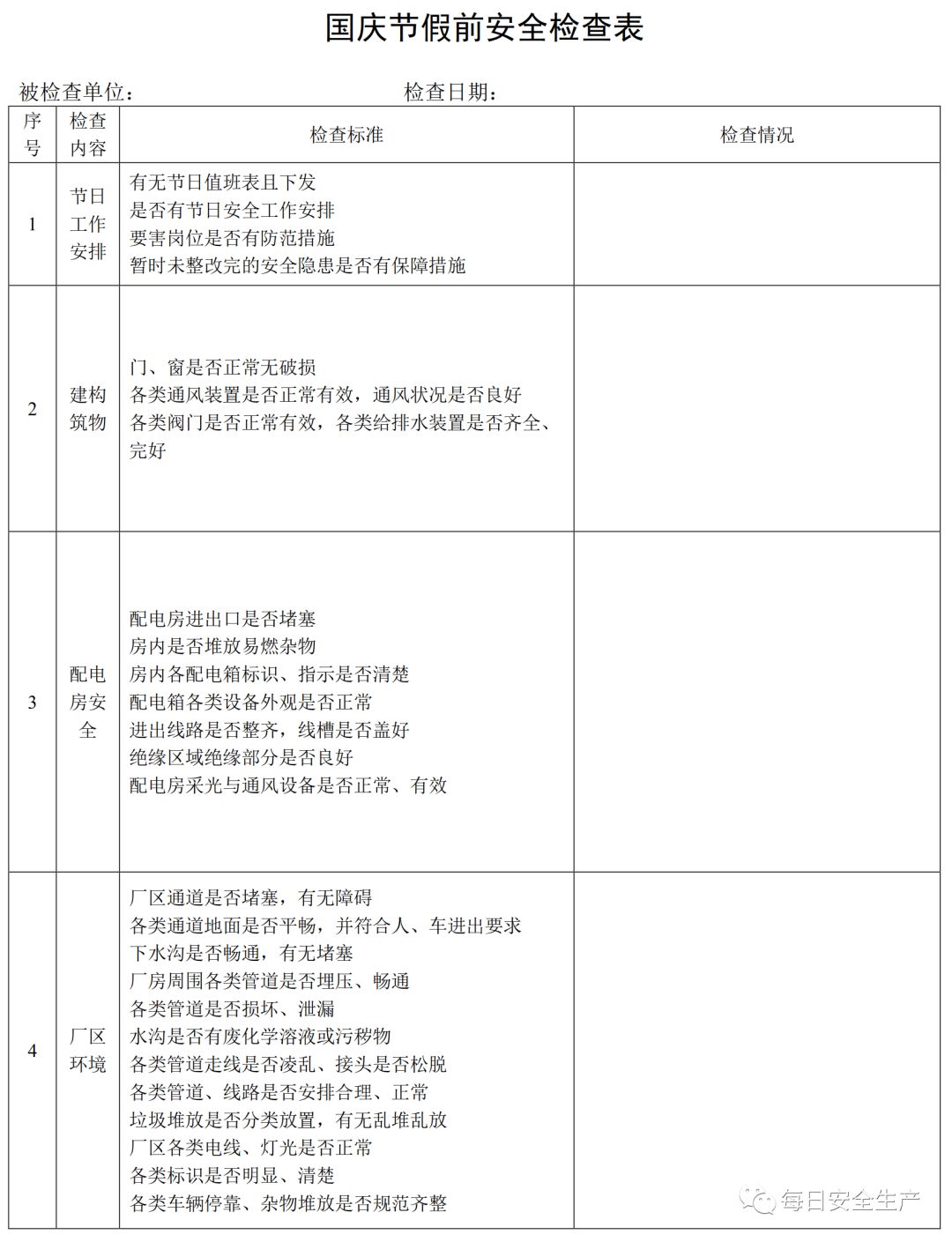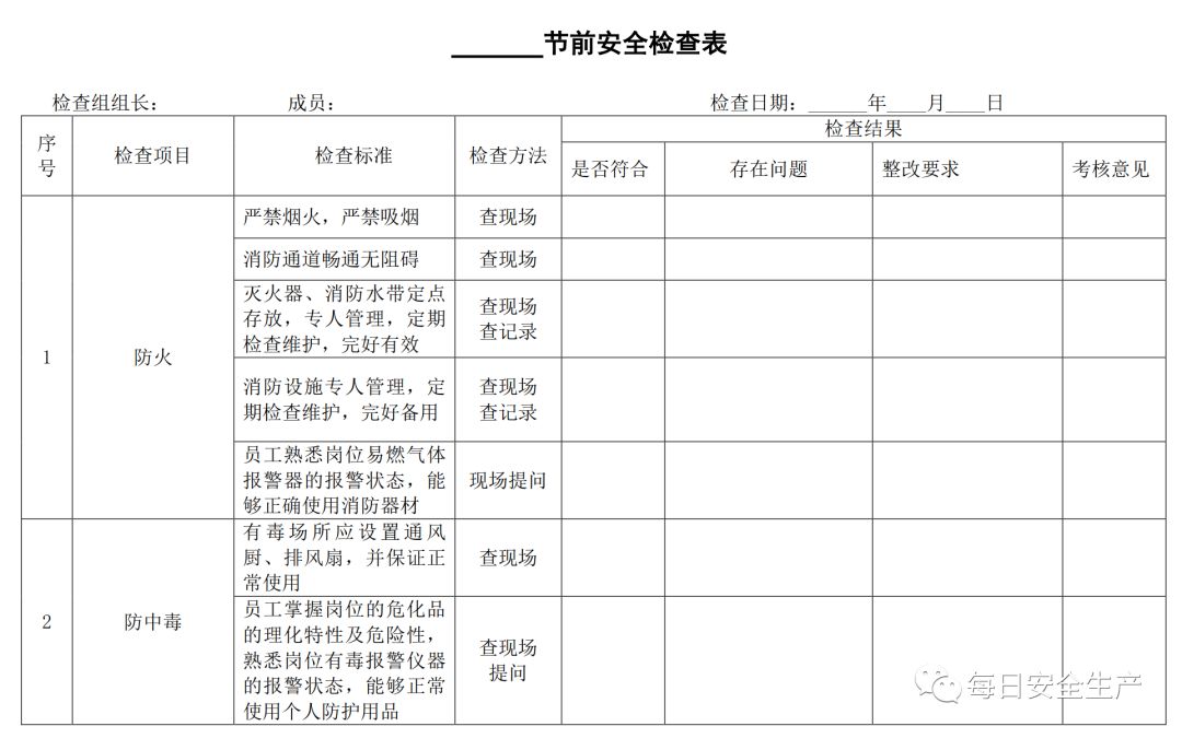 三、节前安全检查表