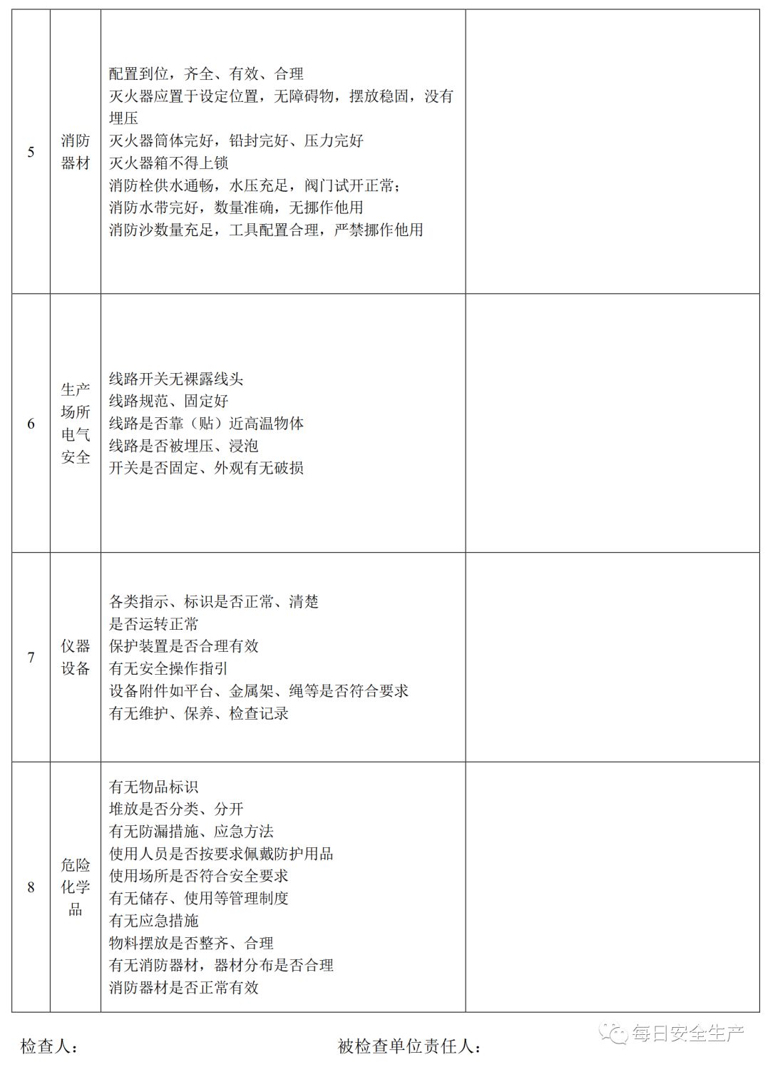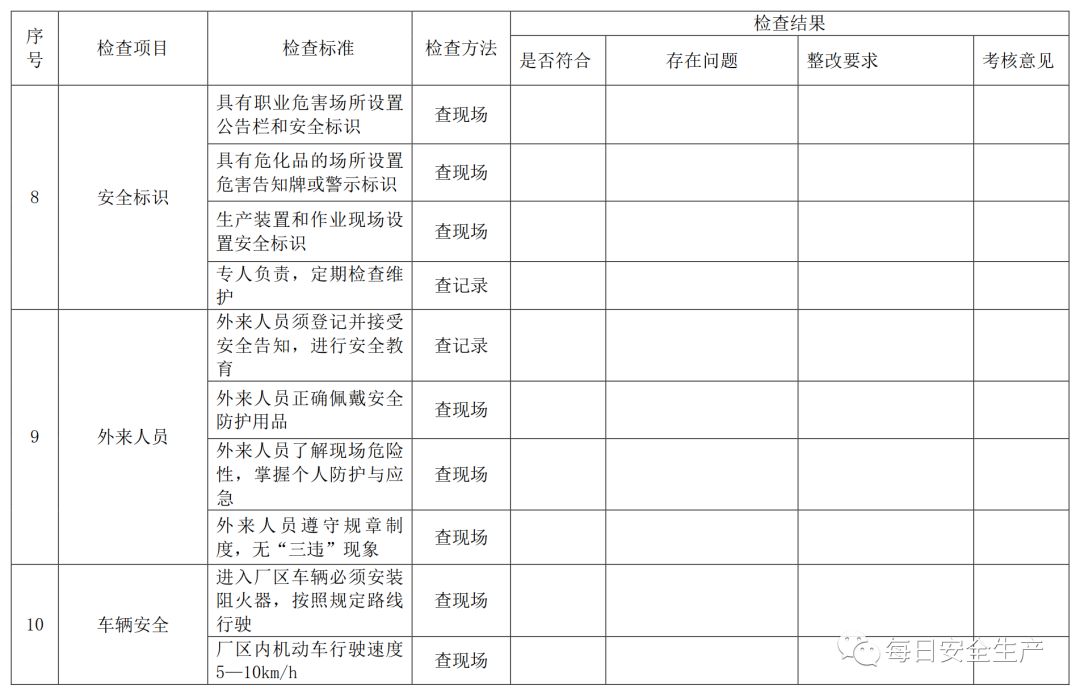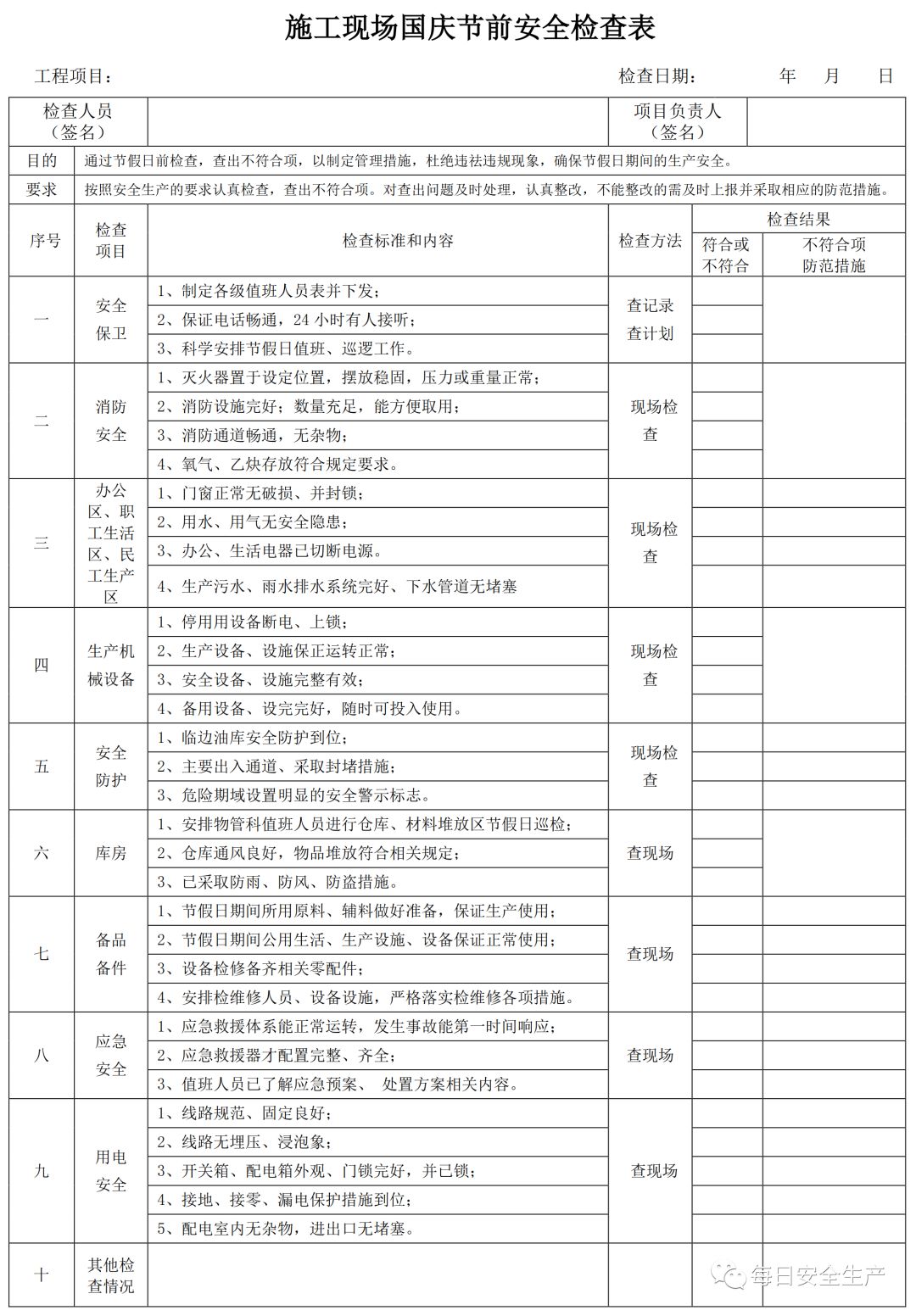 三、节前安全检查表